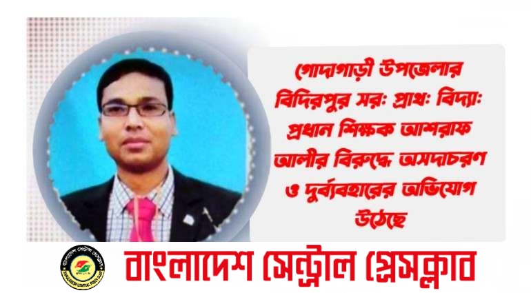 রাজশাহীর গোদাগাড়ী উপজেলার বিদিরপুর সরকারি প্রাথমিক বিদ্যালয়ের প্রধান শিক্ষক আশরাফ আলীর বিরুদ্ধে অসদাচরণ ও দুর্ব্যবহারের অভিযোগ উঠেছে। অধস্তন শিক্ষকদের প্রকাশ্যে তিরস্কার এবং কটূক্তির অভিযোগও প্রধান শিক্ষকের বিরুদ্ধে।