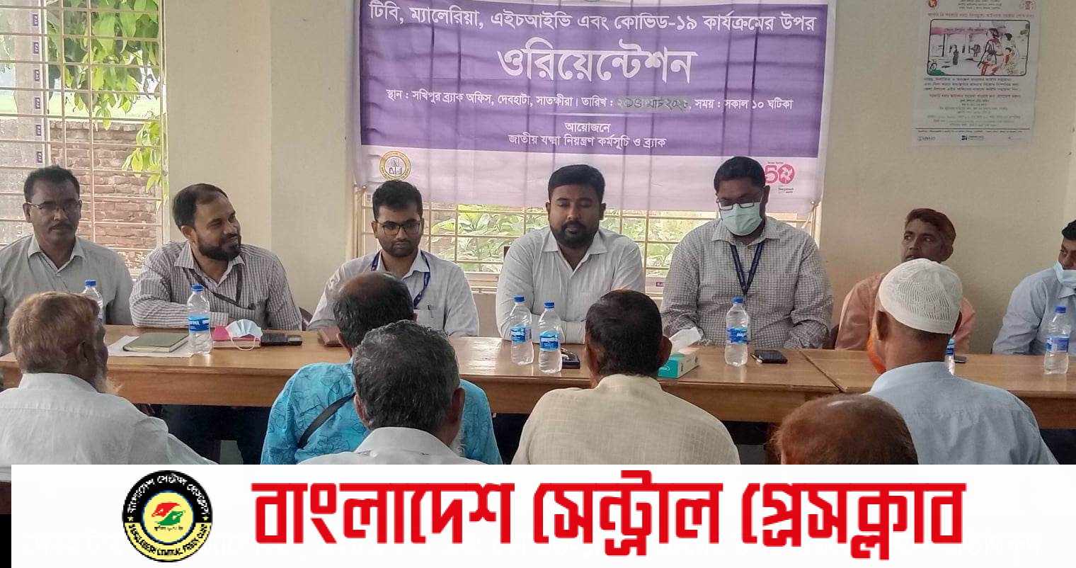 জাতীয় যক্ষ্মা নিয়ন্ত্রন কর্মসূচি ও ব্রাকের আয়োজনে যক্ষ্মা,ম্যালেরিয়া,এইচআইভি এবং কোভিড-১৯ কার্যক্রমের উপর ওরিয়েন্টেশন অনুষ্ঠিত হয়েছে। ১৫মার্চ বুধবার সকাল ১০টায় সখিপুর ইউনিয়ন পরিষদ মিলানায়তনে অনুষ্ঠিত হয়। উক্ত ওরিয়েন্টেশনে সখিপুর ইউনিয়ন পরিষদের ভারপ্রাপ্ত চেয়ারম্যান ইউপি সদস্য নির্মল কুমার মন্ডলের সভাপতিত্বে ও প্রোগ্রাম অর্গানাইজার শ্যামলী হালদারের সঞ্চালনায় প্রধান অতিথি হিসাবে উপস্থিত ছিলেন দেবহাটা উপজেলা নির্বাহী কর্মকর্তা এবিএম খালিদ হোসেন সিদ্দিকী । প্রধান আলোচক হিসাবে যক্ষ্মা সহ বিভিন্ন রোগের উপর বক্তব্য রাখেন খুলনা স্বাস্থ্য অধিদপ্তর বিভাগীয় টিবি কনসালট্যান্ট পরিচালক ডাঃ শাহ মেহেদী বিন জহুর। বক্তব্য রাখেন, সাতক্ষীরা সিভিল সার্জন অফিস জেলা সার্ভিলেন্স মেডিকেল অফিসার ডাঃ ত্রিতীর্থ ঘোষ, সাতক্ষীরা জেলা ব্যবস্থাপক মোঃ সোহেল রানা। এসময় উপস্থিত ছিলেন দেবহাটা রিপোটার্স ক্লাবের সভাপতি অহিদুজ্জামান, সাতক্ষীরা সিভিল সার্জন অফিস জেলা প্রোগ্রাম অর্গানাইজার উজ্জ্বল কুমার পাল, উপজেলা স্বাস্থ্য কমপ্লেক্স যক্ষ্মা ও কুষ্ট নিয়ন্ত্রন সহকারী মিঠুন কুমার সরদার, ইউপি সদস্য গ্রাম ডাঃ নজরুল ইসলাম, গ্রাম ডাঃ শোকর আলী, আবীর হোসেন লিয়ন, গ্রাম ডাঃ শফিকুল ইসলাম ও ফিল্ড অর্গানাইজার মিরা খাতুন সহ দেবহাটা উপজেলার গ্রাম ডাক্তারবৃন্দ