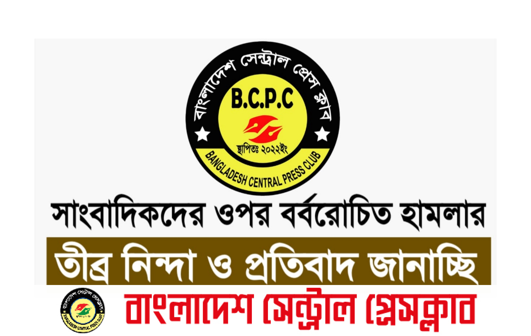 নীলফামারী সাংবাদিকদের ওপর বর্বরোচিত হামলার প্রতিবাদে বাংলাদেশ সেন্ট্রাল প্রেস ক্লাব (বি.সি.পি.সি) কেন্দ্রীয় কমিটির তীব্র নিন্দা ও প্রতিবাদ।