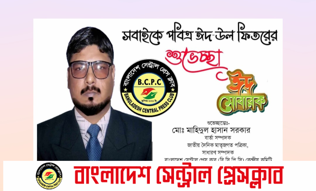 নিজস্ব প্রতিবেদকঃ- বাংলাদেশ সেন্ট্রাল প্রেস ক্লাব (বি.সি.পি.সি) কেন্দ্রীয় কমিটির নেতৃবৃন্দ ও সকল সদস্য প্রিয় সাংবাদিক সহকর্মী ভাই বোন বন্ধুগণ শুভানুধ্যায়ী ও দেশবাসী প্রবাসী বাংলাদেশি সবাইকে পবিত্র ঈদ-উল ফিতরের শুভেচ্ছা ও অভিনন্দন জানিয়েছেন বাংলাদেশ সেন্ট্রাল প্রেস ক্লাব (বি.সি.পি.সি) কেন্দ্রীয় কমিটির সাধারণ সম্পাদক ও জাতীয় দৈনিক মাতৃজগত পত্রিকার বার্তা সম্পাদক মোঃ মাহিদুল হাসান সরকার।