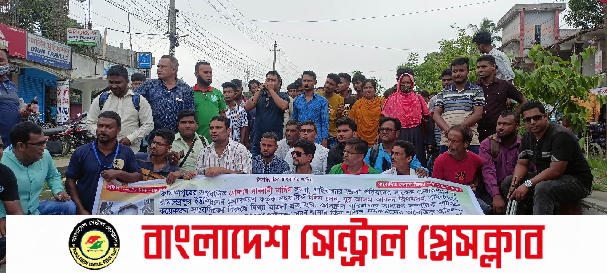গাইবান্ধা জেলা ব্যুরোঃ জামালপুরের বকশীগঞ্জে সাংবাদিক গোলাম রাব্বানি নাদিম হত্যার প্রতিবাদ ও গ্রেফতারকৃত আসামীদের ফাঁসির দাবিতে রাস্তা অবরোধ করে প্রতিবাদ কর্মসুচী পালন করা হয়েছে।